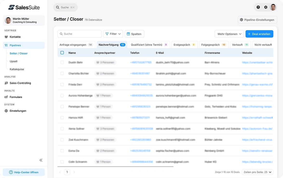 Durch das Setter-Closer-Prinzip ist SalesSuite für mich das beste CRM. Man kann damit hervorragend arbeiten, und auch der Support ist einfach genial.